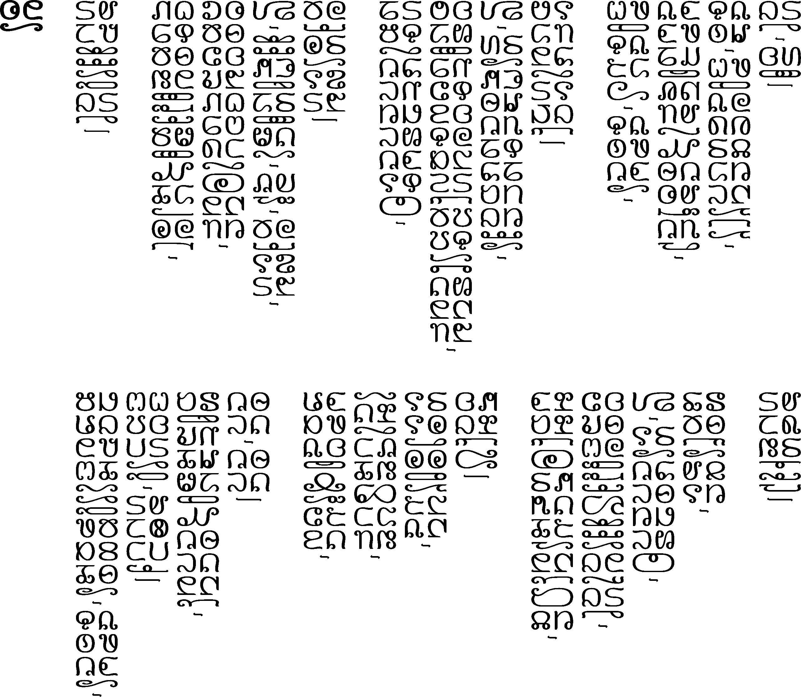 96 suffixes are represented with specific symbols (flipped or not), with pronunciations vaguely close to their phonetic or determinative readings, but irregular. As suffixes, the symbols are morphemic, and don’t change to reflect an epenthetic vowel or anything. The first suffix fills the fourth (second row, rightmost) symbol spot, and if there’s only one suffix, that’s the complete character; if there are additional suffixes, they simply add on below in additional rows, left-right-left-right, flattening if there’s an odd number. There may be no way to distinguish these from compounds except context.